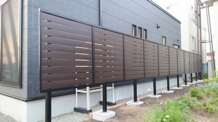 完全にプライバシーを守るためには1.8m以上のフェンスが必要と言われております。1.5m以上のフェンス(遮蔽率によりますが)には独立基礎(沓石、フェンスベース等のコンクリートブロック)ではなく布基礎(繋がったコンクリートで家、塀等で使われる)がお勧めです。北海道では雪の張り付き等により基礎ごと傾くことがあるからです。 色、高さ、遮蔽率により家の中から見ると、圧迫感を感じる事があるので要注意です。 10年程前までは、木製のフェンスがもてはやされましたが、よほどお手入れをしないと数年で腐ることが多く、近年プラスチック、合成樹脂、アルミ等の製品が主流となり、耐用年数が飛躍的に伸びております。 弊社では個々の住宅事情に合ったフェンスを低予算でご案内させて頂きます。 見積もりの際に必要な、設置場所のレベル測量も無料で承っております。 |