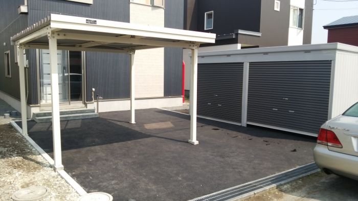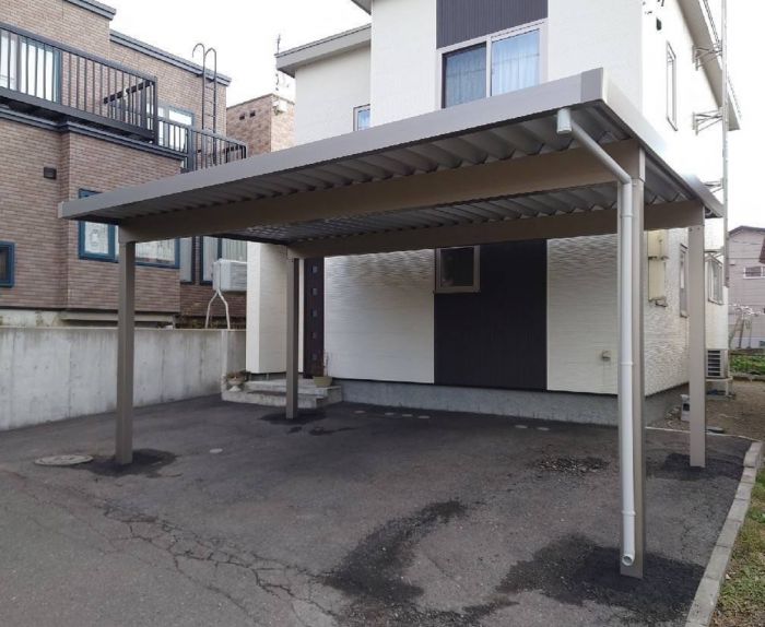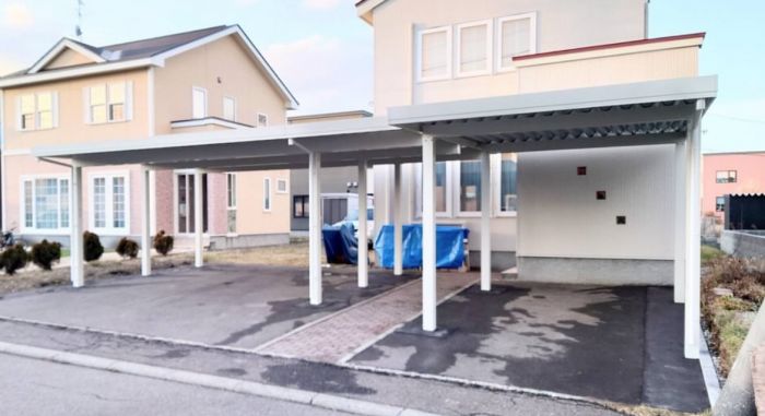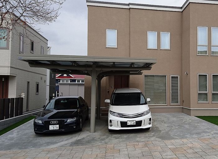 北海道でカーポート、ガレージを選ぶ基準となるのは耐積雪量です。1台用の屋根はおおよそ16.5㎡ありますが、湿った雪が50㎝積もると3トン近い重量が載っていることになります。 カタログに記載されている耐積雪量は軽い雪を想定しており、弊社の営業地域では耐積雪量1m以上(重たい雪では50㎝)の製品をお勧めしております。 四方を壁で囲まれているガレージは高い防犯性、また雨、風、UVからお車を守ってくれるといったメリットがある一方、遮蔽により重苦しい景観になる事があります。 その点カーポートは見通しが利くので、建てる位置を気にしなくて済むといったメリットがあります。 どちらを選ぶかはお客様のライフスタイルによるところです。 弊社では全メーカーを取り扱っております。古いガレージ等の取り壊しも特価で承っておりますので、是非お問い合わせ下さい。 |