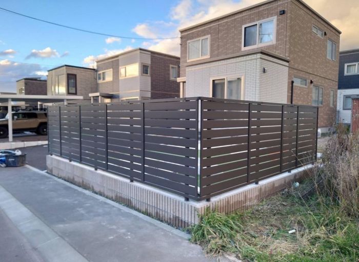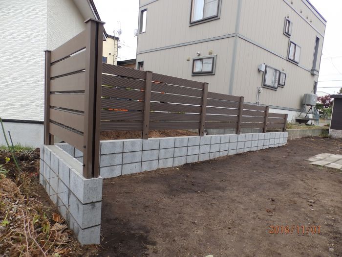完全にプライバシーを守るためには1.8m以上のフェンスが必要と言われております。1.5m以上のフェンス(遮蔽率によりますが)には独立基礎(沓石、フェンスベース等のコンクリートブロック)ではなく布基礎(繋がったコンクリートで家、塀等で使われる)がお勧めです。北海道では雪の張り付き等により基礎ごと傾くことがあるからです。 色、高さ、遮蔽率により家の中から見ると、圧迫感を感じる事があるので要注意です。 10年程前までは、木製のフェンスがもてはやされましたが、よほどお手入れをしないと数年で腐ることが多く、近年プラスチック、合成樹脂、アルミ等の製品が主流となり、耐用年数が飛躍的に伸びております。 弊社では個々の住宅事情に合ったフェンスを低予算でご案内させて頂きます。 見積もりの際に必要な、設置場所のレベル測量も無料で承っております。 |